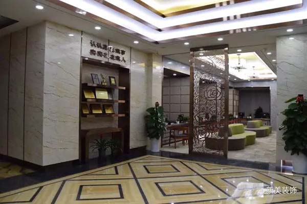 一樓大堂和高端客戶(hù)接待區(qū)以歐式裝修風(fēng)格為主,結(jié)合中國(guó)風(fēng)的花紋屏風(fēng),顯得十分典雅和高貴,給人以尊貴之感。